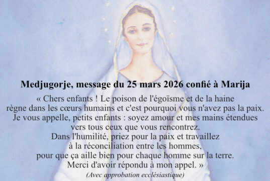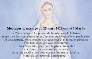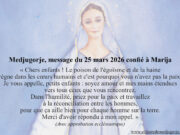 Medjugorje, message du 25 mars 2026 confié à Marija