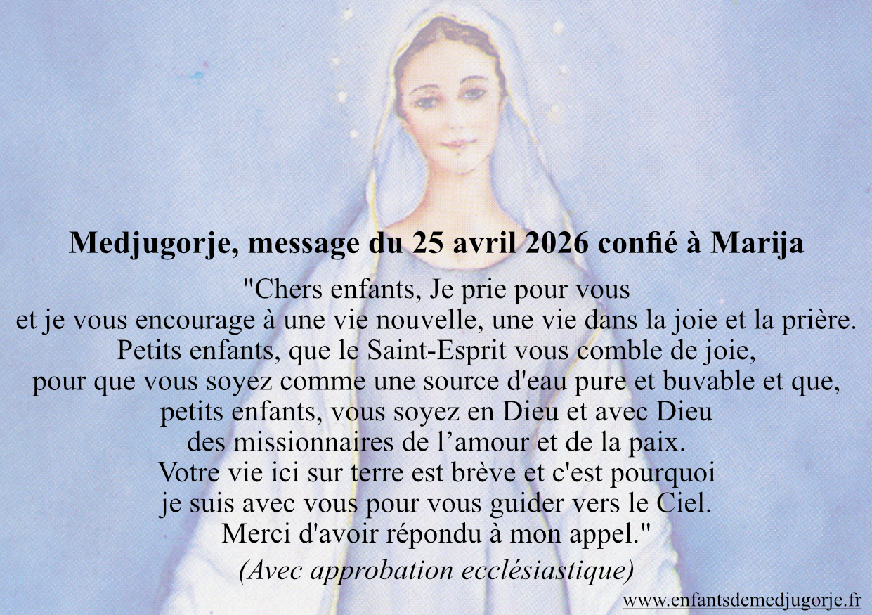 ![[Direct-26_février-21h] Message du 25 février 2026 le direct le 26 ! par Sr Emmanuel depuis Medjugorje Message du 25 décembre](https://www.enfantsdemedjugorje.fr/wp-content/uploads/2025/12/28_DEC_25-180x135.jpg)